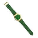 ساعة رجالي مع حزام من الجلد الطبيعي باللون الأخضر والذهبي